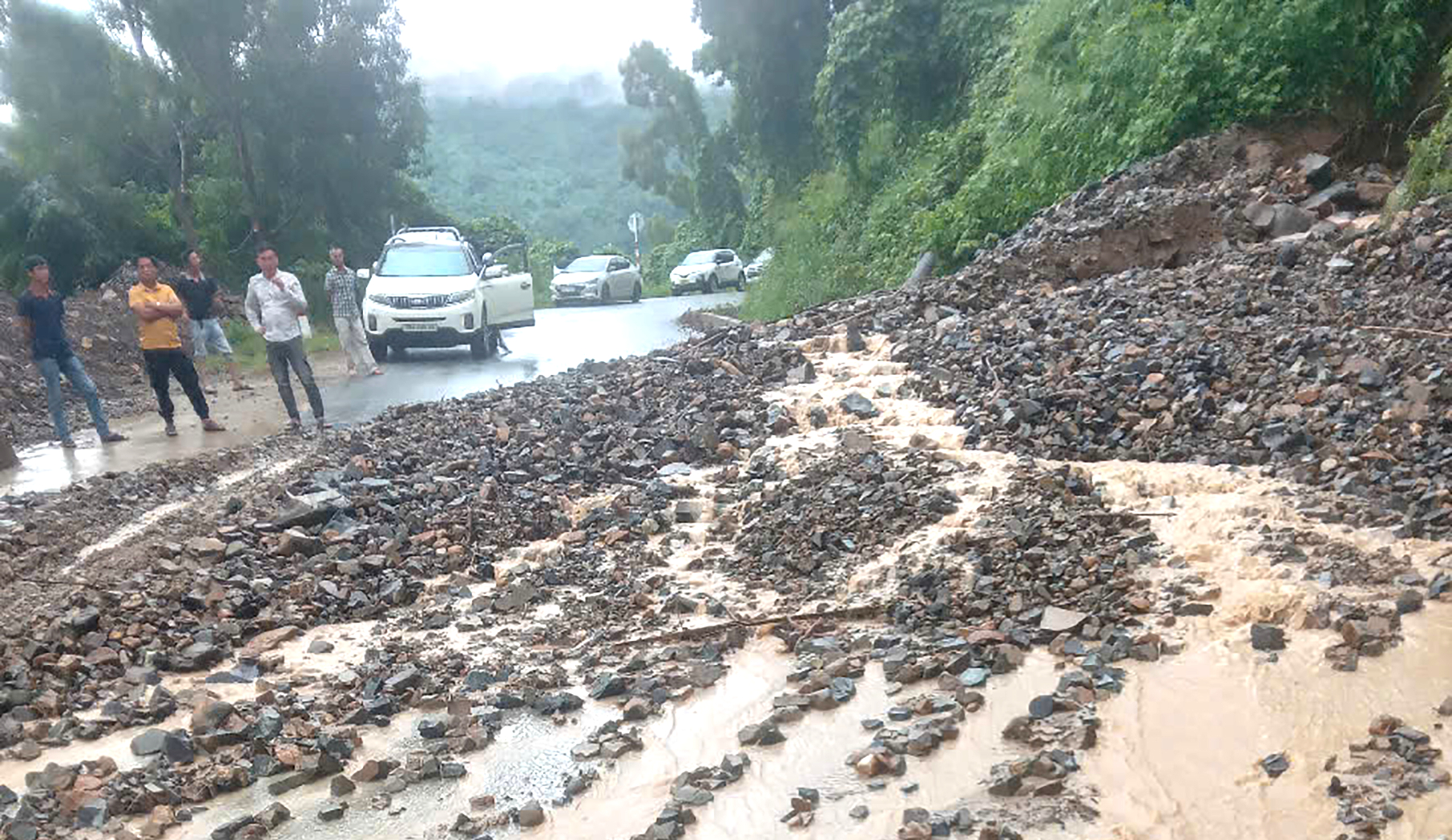 Trước đó, vào lúc 18h45 ngày 27/10, một lượng lớn đất đá và cây lớn bất ngờ đổ ập, chắn ngang đường, gây cản trở cho hoạt động của các phương tiện giao thông trên đèo Ngoạn Mục, quốc lộ 27.
